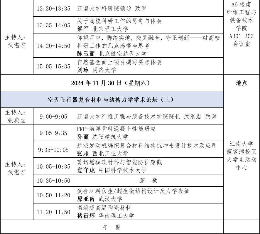 2024年11月30日 9:00-11:50 空天飞行器复合材料与结构力学学术论坛(上)