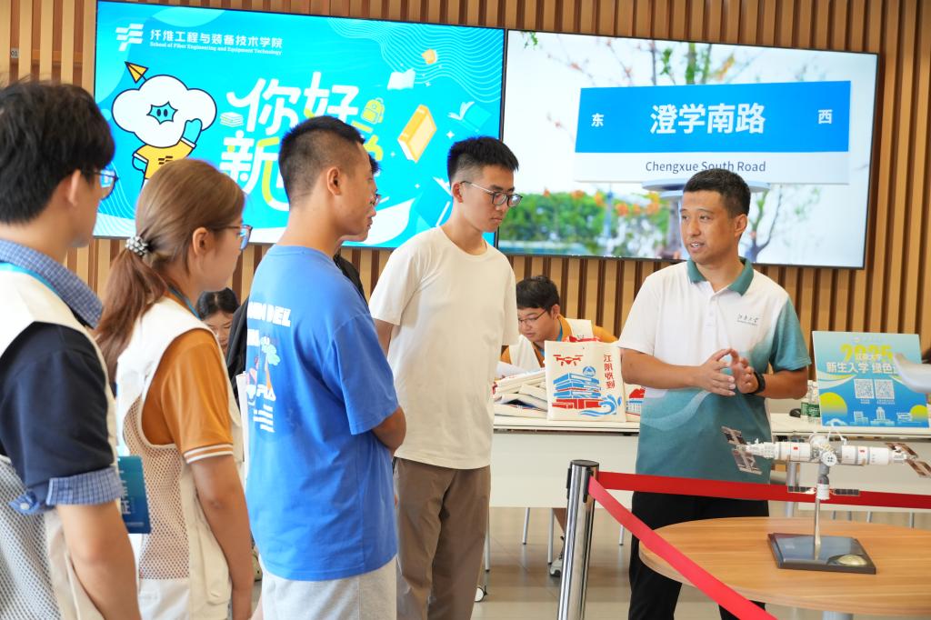 值得一提的是,公司大厅还特别陈列了自主研发的小型固定翼无人机与天宫空间站模型,科技感十足的展品瞬间吸引了新生的目光。姜广君教授和柳宁教授顺势“现场开讲”,用通俗的语言讲解无人机的设计原理、空间站的构造特点,新生们围在展品旁认真倾听,眼神里满是对专业的好奇与向往。这场“沉浸式”专业初体验,不仅拉近了新生与飞行器专业的距离,更悄悄点燃了大家未来的学习热情。